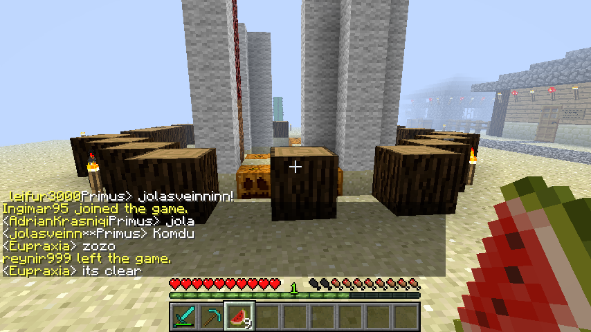 Ég kom iná cc og baxterinn sagði mér að það væri búið sð grifa bæinn ég fór að skoða griefinn og sá að griferinn hafði tekið 10-12 gol blocks , enchanting table ,brewing stands og skemmti önnur hús