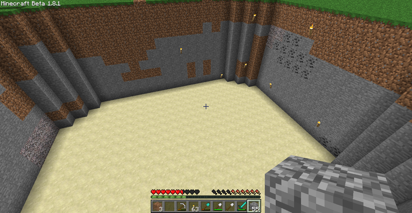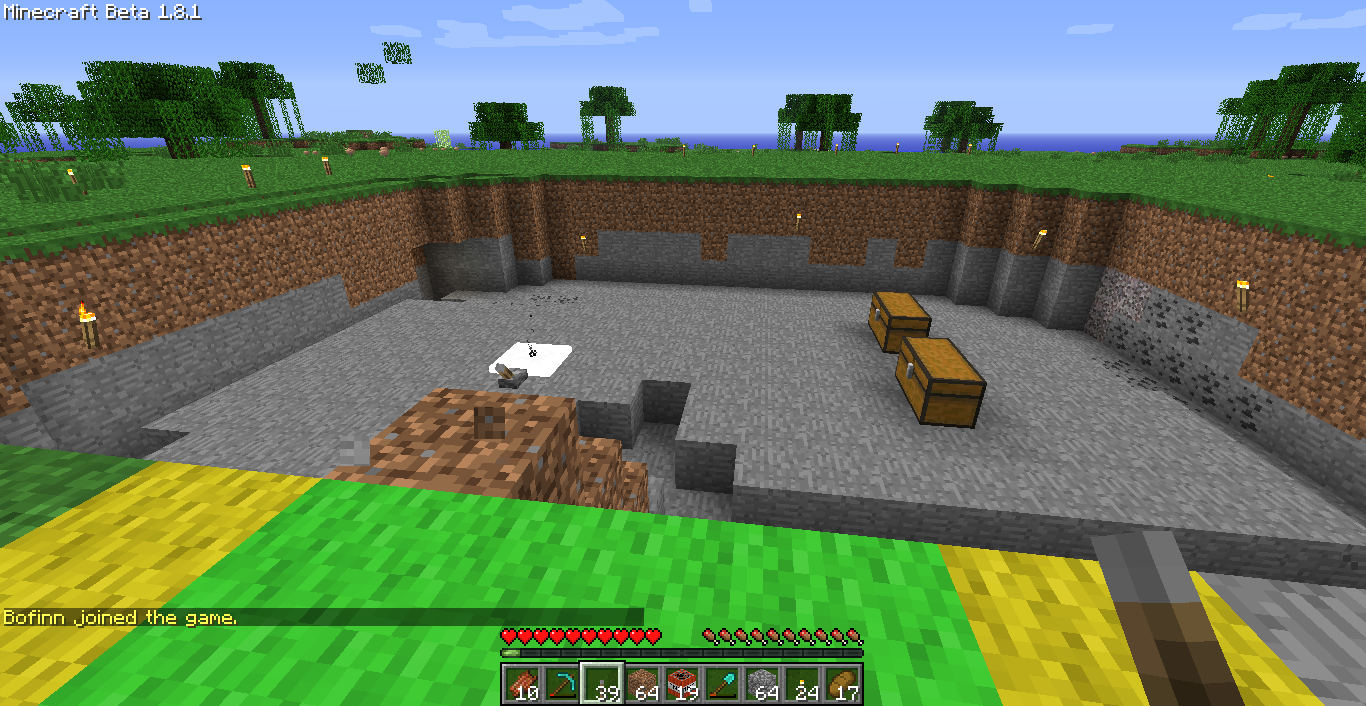 ég var búinn að safna stack + 23 glowstone og gera risastórt kistuherbergi (gróf það inn í klett) og ja hérna er arenað sem ég gerði.. það erlíka farið