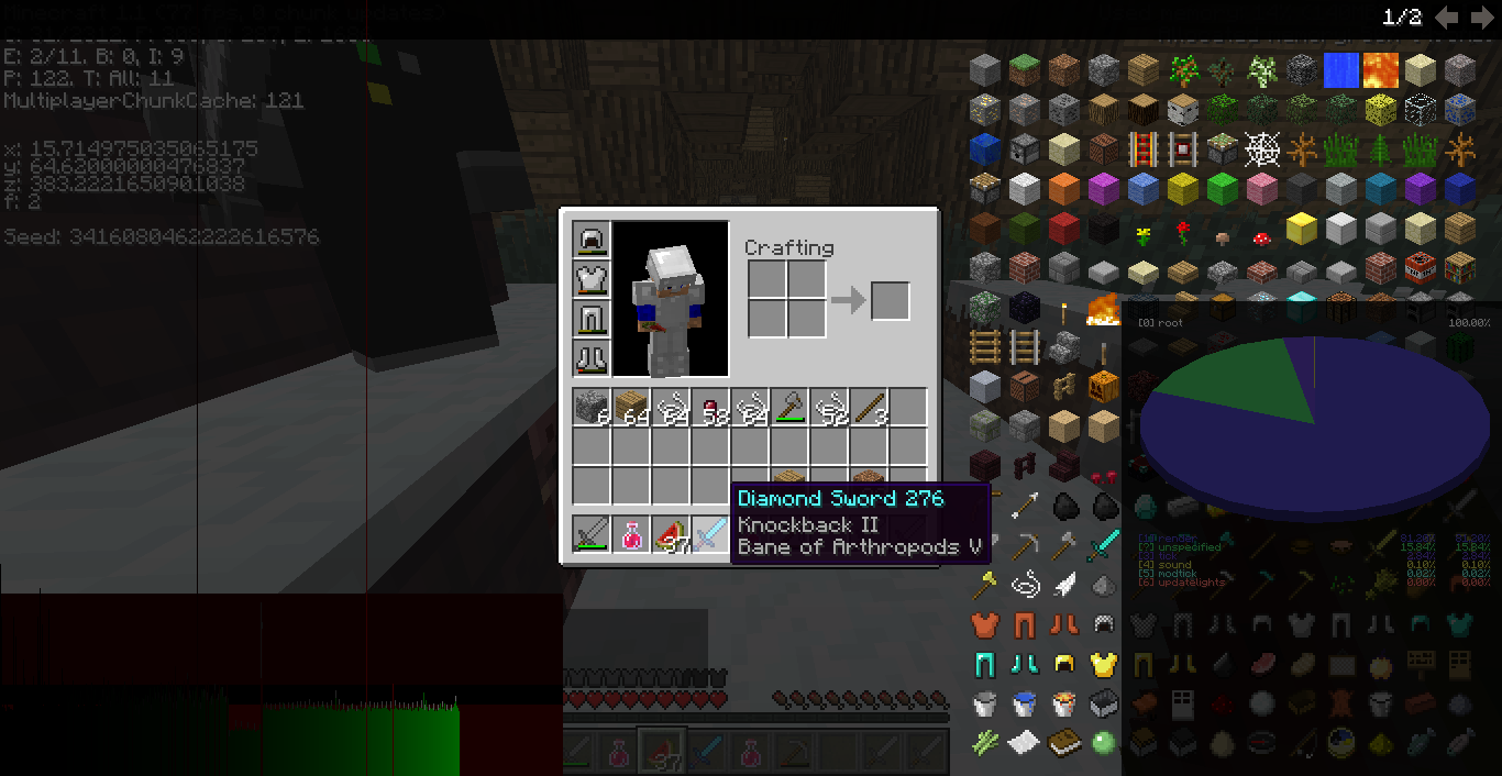 FFS2 fékk Sharpness III , Knockback II og Fire aspect II í lvl 24 á iron sword !