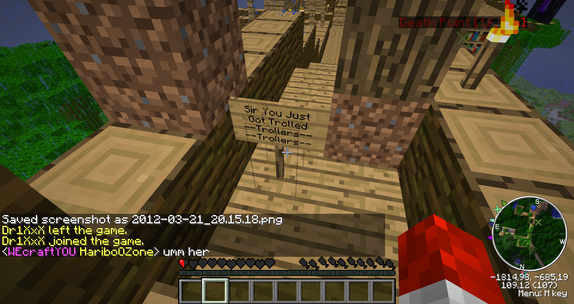 Umm , ég plantaði bara trjám í GAMLA basinu ... Svo kom Gulli9000 og eg bara drap hann , no spawnkill .