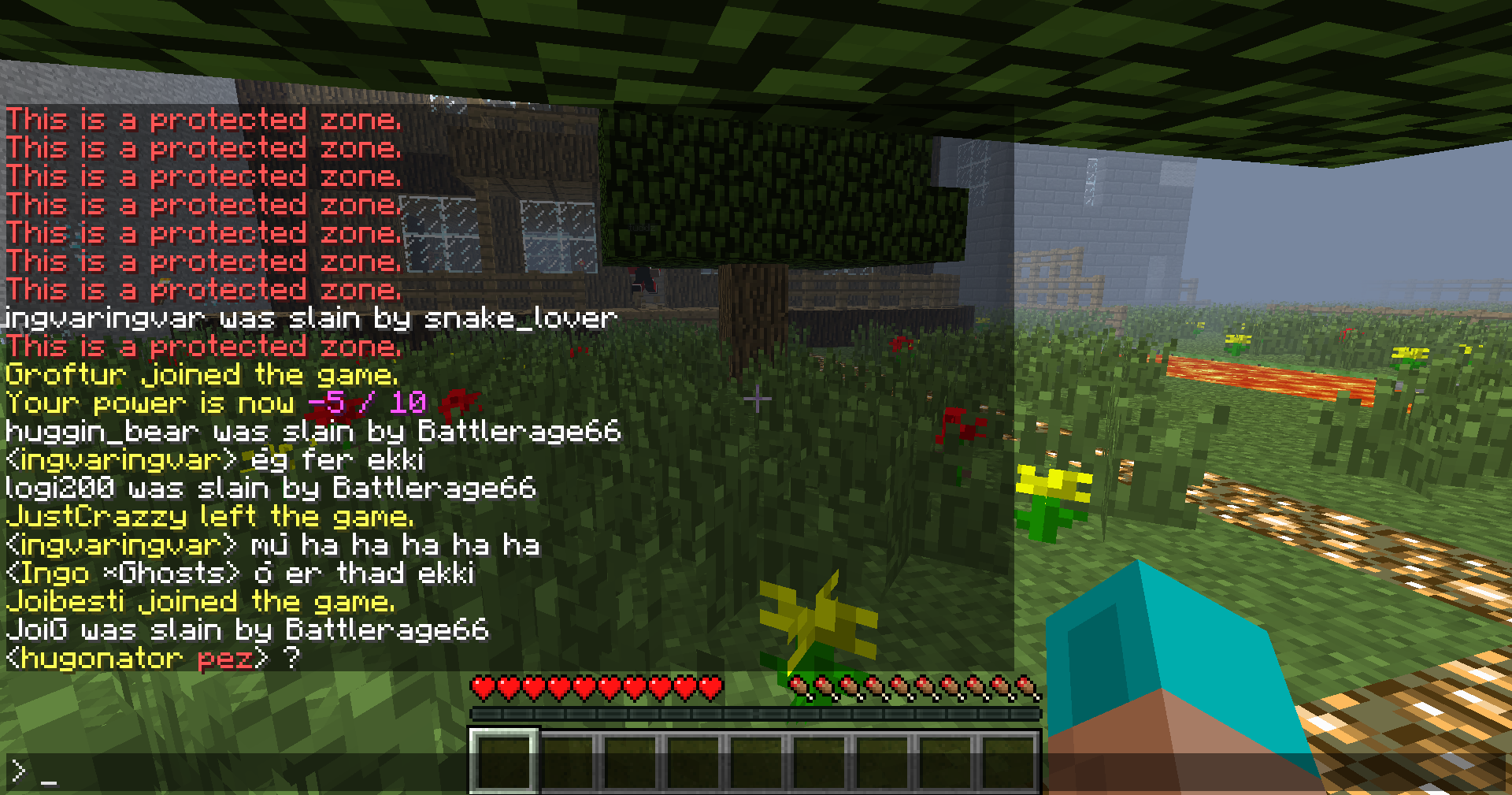 þetta er bara kjaftæði, þið voruð 2 inná i full diamond þá komum við (ég kobbi96 og battlerage66) og ég með fire diamond sword og hann sharpness II og einfaldlega ownuðum ykkur og þið eruð svo lélegir að þið sakið hann um hack þegar ykkur var einfaldlega ownað, og þið getið ekki viðurkennt það. :D